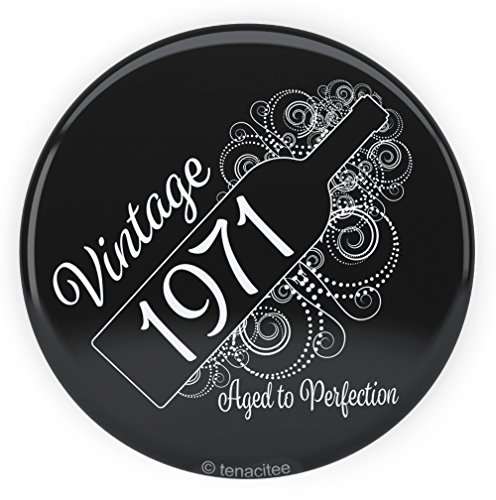 Binding : Apparel Product Description Born in 1971 - Aged Like a Fine Wine 2.25" Button by Tenacitee. Express yourself! Buttons are the perfect way to let the world know how you feel. Our buttons are designed, printed, and handmade at Tenacitee's studio in Oklahoma. Proudly made here in the USA! This 2.25" button has a metal shell with pinback and mylar cover to protect from scratches. Perfect to decorate your shirt, jacket, bag, or put anywhere else you want! It's a great gift or giveaway for parties. 0