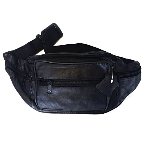 -. Title : 100% Genuine Cowhide Leather Fanny Pack - Black