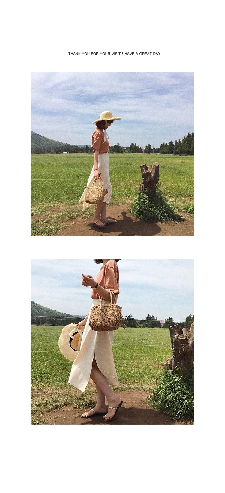 Description:Hand-woven straw Women bag