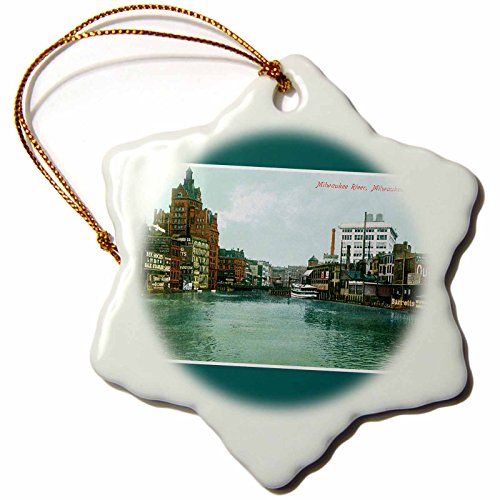 3dRose orn_170926_1 Milwaukee River, Milwaukee Wisconsin City Scape-Snowflake Ornament, Porcelain, 3-Inch