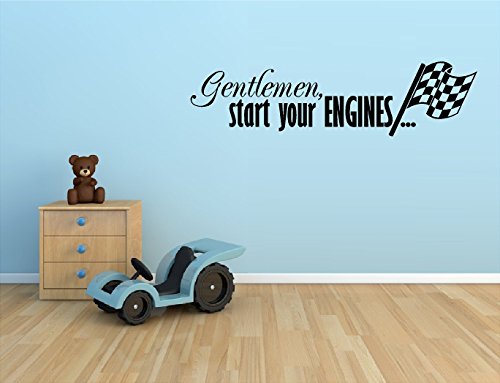 -. Title : GENTLEMAN START YOUR ENGINES WITH CHECKERED FLAG RACING RACE CARS VINYL WALL DECAL STICKER BOYS KIDS ROOM HOME DECOR