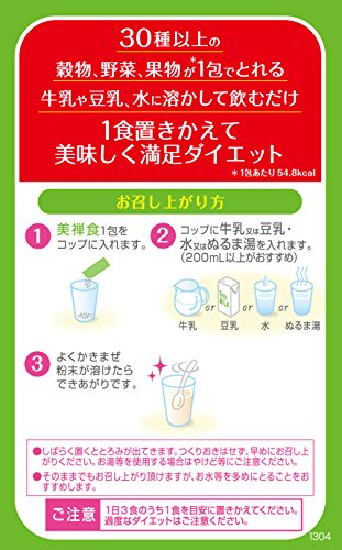 Grains and cereals vegetables dried etc. more than 30 kinds of fruits is a meal replacement diet food which was in powder. Milk or soy milk only drink dissolved in water. By replacing one meal it supports the delicious satisfaction diet.