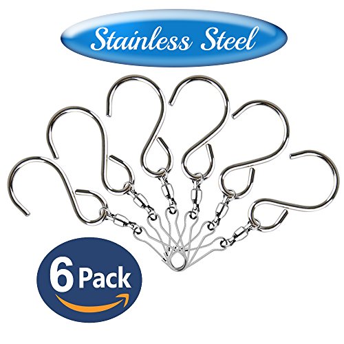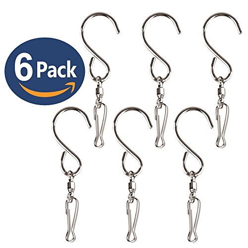 Inoveez [6-Pack] Swivel S Hooks Clips for Hanging Wind Spinners, Wind Chimes, Toys, Bells Crystal Twisters