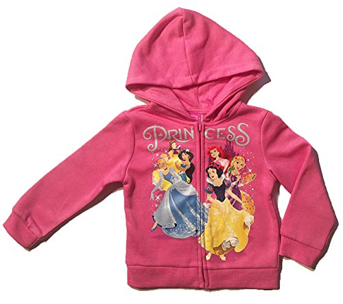 Little (toddler) girls will love this pink Disney Princess hoodie. It is a lightweight fleece hoodie that zips up the front. Has Princess graphics on the front featuring Belle, Cinderella, Jasmine, Ariel, Snow White, and Rapunzel.Feature