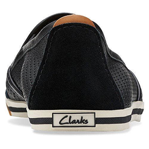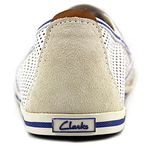 -. Binding : Apparel -. Brand : CLARKS -. Color : White -. Department : mens -. Feature : This men's slip-on shoe from the Tor collection has an ultra-low profile and sleek design perfect for everyday wear / It's made of perforated leather in white with a cork footbed for enhanced cushioning and has a ground-gripping rubber outsole / Brings a modern edge to denim, khakis, and any warm-weather pant -. Label : CLARKS -. Manufacturer : CLARKS -. NumberOfItems : 1 -. PackageQuantity : 1 -. ProductGroup : Shoes -. ProductTypeName : SHOES -. Publisher : CLARKS -. Studio : CLARKS -. Title : Clarks Men's Mego Slip On Comfort Cushion Fashion Loafers
