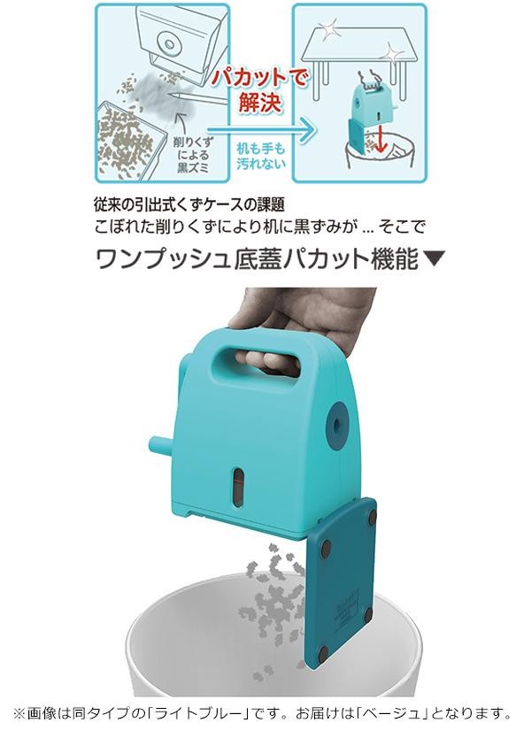 | 削りくずを直接ゴミ箱に捨てられる机を汚さない鉛筆削り器!! |
