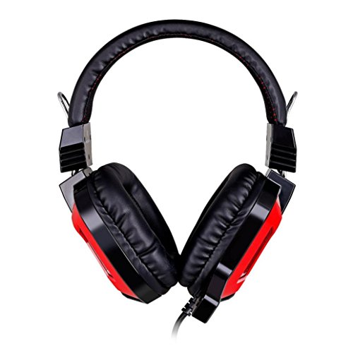 -. Feature : ★ Striking Design: Cool looking with a red and black color scheme; Lightweight for long and intense game sessions. / ★Built-in Noise Isolating Microphone, communicate with your game partner with clear sound. 2.2m durable Braid wired Cable. Comes with a Y Stereo Splitter for audio sound and mic / ★Versatile Compatibility: Compatible with OS, Windows 98 / 2000 / XP / VISTA / WIN 7 / WIN 8 / WIN 10, Mac; Support MP3 / MP4 / Tablet / Mobile Phone / PC / PS4. / ★Hi-fi Surround Sound: High precision 40mm magnetic neodymium driver, brings you vivid sound field, sound clarity, sound shock feeling, capable of various games. Glaring LED lights are designed on the ear cups, highlighting the atmosphere of the game / ★Stylish lightweight and Maximum Comfort: soft durable over-ear cushions, lightweight elastic headband, designed to provide maximum comfort; enjoy superb pure gaming sound with passive noise reduction technology; listen for hours and forget you are even wearing them.