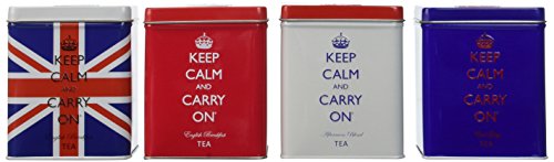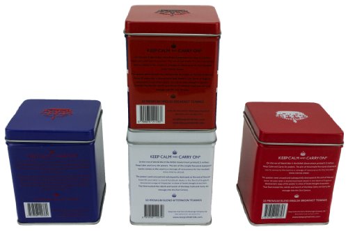 -. Title : Keep Calm and Carry On Tea Sampler with 4 Tins, English Breakfast (2), Afternoon Blend and Earl Grey (40 Tea Bags, 100g)