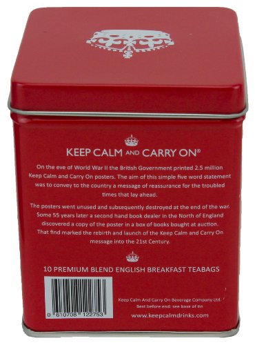 -. Feature : Four distinctive Keep Calm and Carry On tins, each with 10 bags of one of three different types of traditional English teas: English Breakfast (2 tins), Afternoon Blend and Earl Grey. / Imported from England. Tea from Sri Lanka.