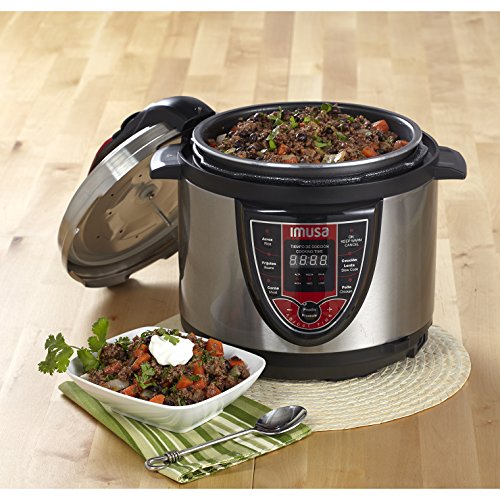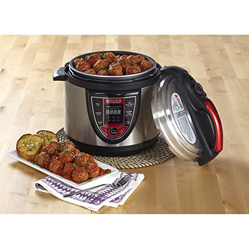 Imusa pressure cookers are perfect for your busy lifestyle. Pressure cookers speed up cooking time by 70%, retain more minerals and vitamins, reduce energy and heat while cooking, and are easy to clean up! the unit traps steam inside, which builds up pressure to create hotter temperatures, and its tight seal locks in heat, moisture, and flavor. Use your IMUSA pressure cooker for beans, soups, chili, poultry, and other one-dish entrees. You're about to experience a better, faster, and healthier way of cooking!.Feature