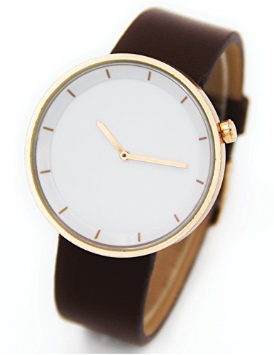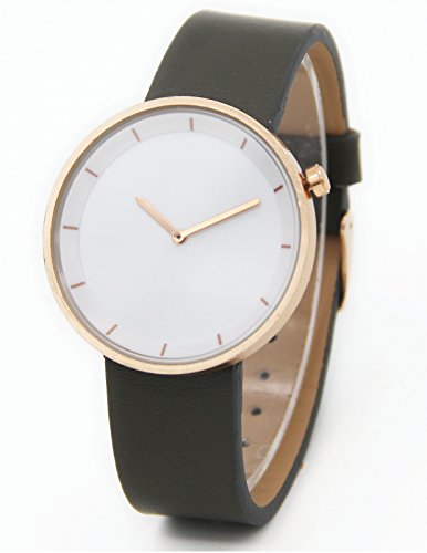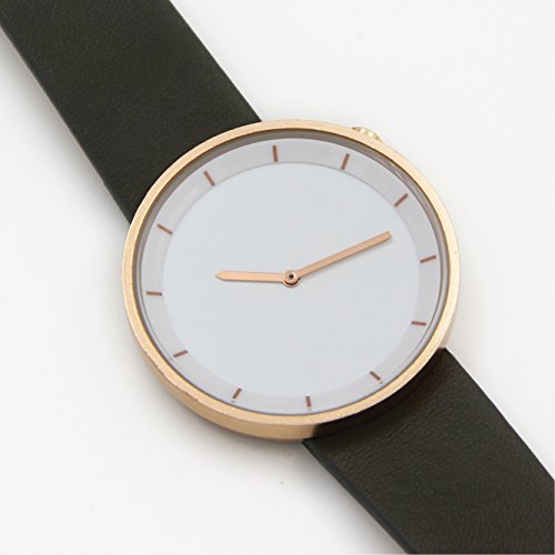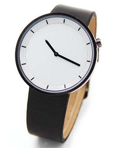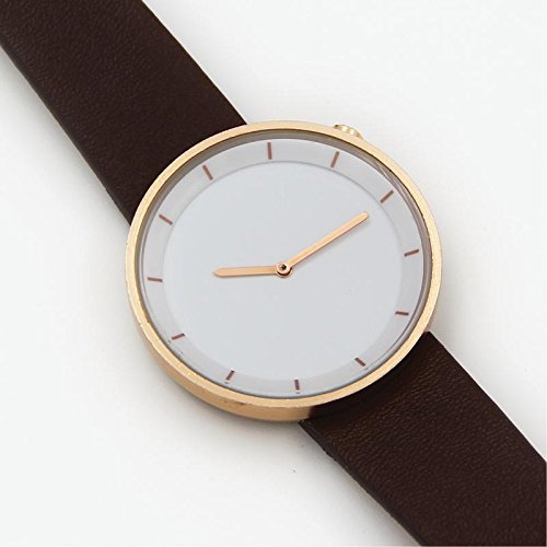 -. Title : Casual Unisex Women Men Black Leather Quartz Watch White Dial Gold Round Case