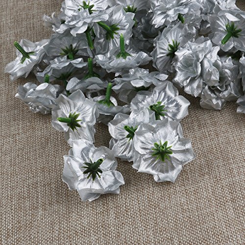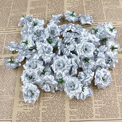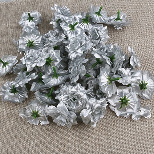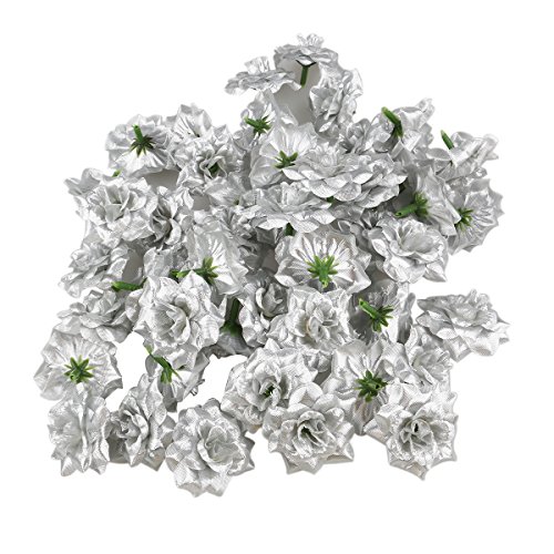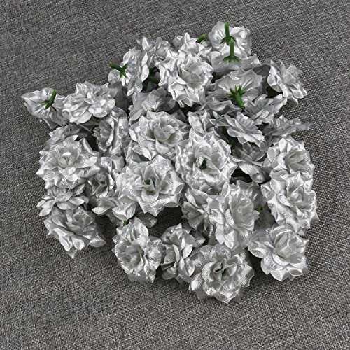 Tinksky 50pcs Silk Rose Flower Heads for Hat Clothes Album Embellishment Wedding Car Decoration (Silver)