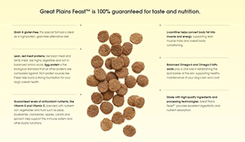 Grain & gluten-free, this special formula is ideal as a high-protein, grain-free alternative diet. Lean, red meat proteins, like bison meal and lamb meal, are highly digestible and rich in balanced amino acids. Egg protein is the biological standard that all other proteins are compared against. Rich protein sources like these help build a strong foundation for your dog's overall health. Guaranteed levels of antioxidant nutrients, like Vitamin E and Vitamin C, blended with nutrient-rich vegetables and fruits such as peas, blueberries, cranberries, apples, carrots and spinach help support the immune system and other bodily functions. L-carnitine helps convert body fat into muscle and energy, supporting lean muscle mass and overall body conditioning. Balanced Omega-6 and Omega-3 fatty acids play a vital role in establishing the lipid barrier of the skin, supporting healthy maintenance of your dog’s skin and coat. Made with high-quality ingredients and processing technologies, Earthborn Holistic Great Plains Feast™ provides excellent digestibility and nutrient absorption. Earthborn Holistic pet food is made in our own kitchens in the US. Packaging is BPA free and 100% recyclable through TerraCycle and our Earthborn ReBorn program.Feature