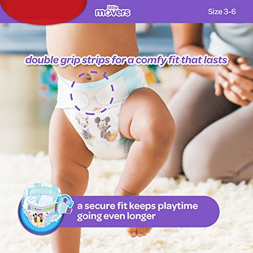 Featuring adorable Disney designs, HUGGIES Little Movers diapers Size 3 fits babies from 16 to 28 lb.
