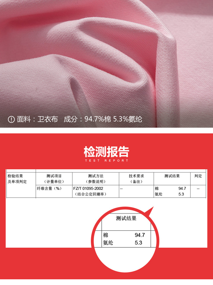 | 面 料:94.7%棉 5.3%氨纶颜 色:粉色 |