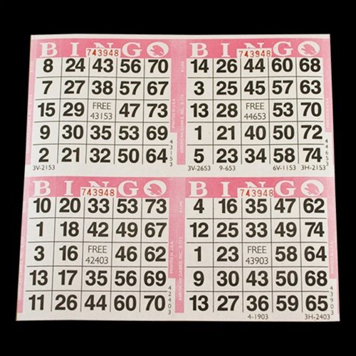 4 on Pink Bingo Paper Cards - 750 sheets - 3000 cards