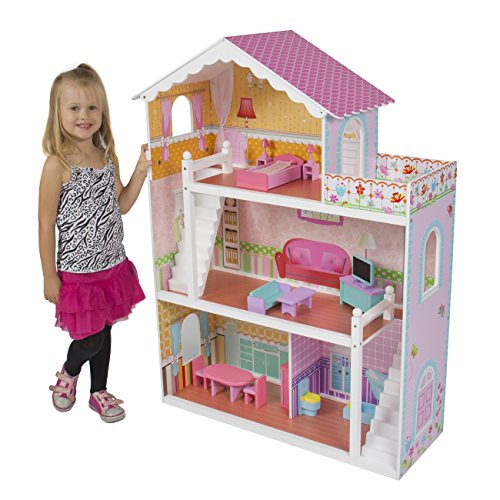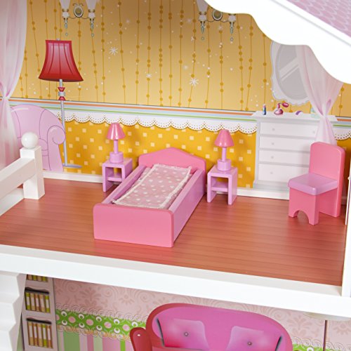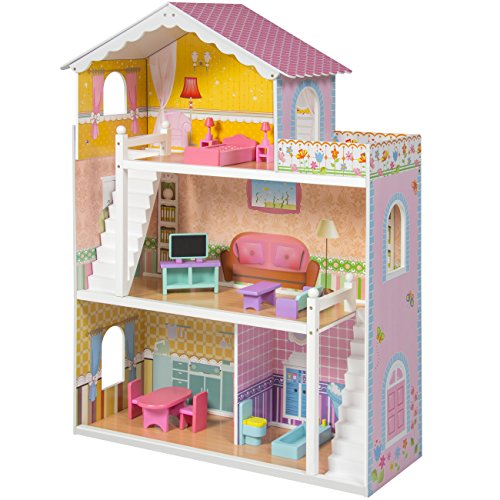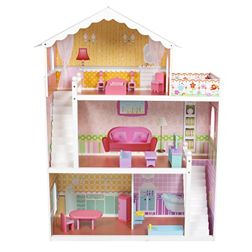 - Designed with eco-friendly MDF and non-toxic paint, this 3-story dollhouse is a perfect addition to your child’s play area