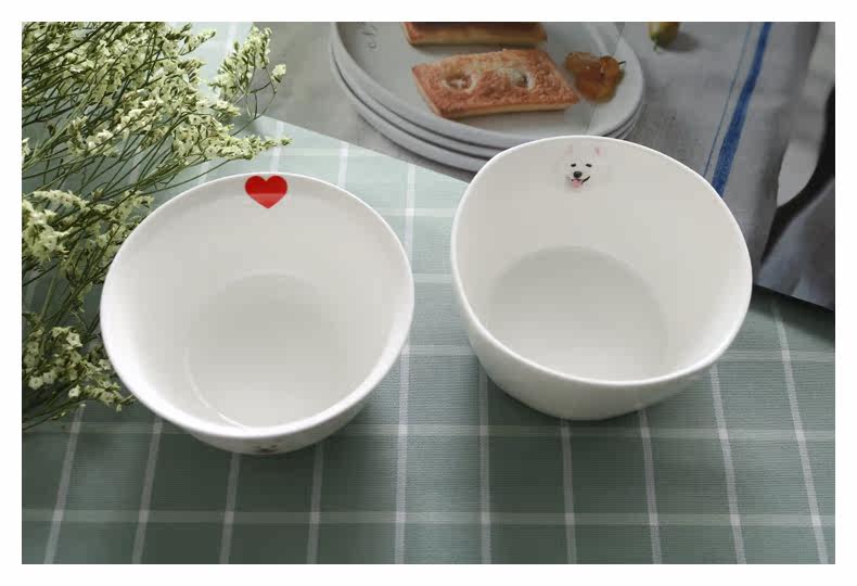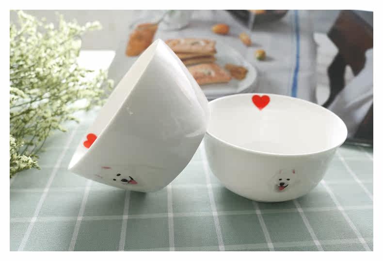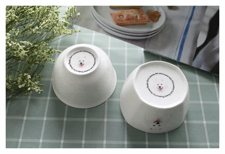 新可爱萨摩耶系列骨瓷饭碗小汤碗原创萌宠家用餐具四方碗卡通陶瓷