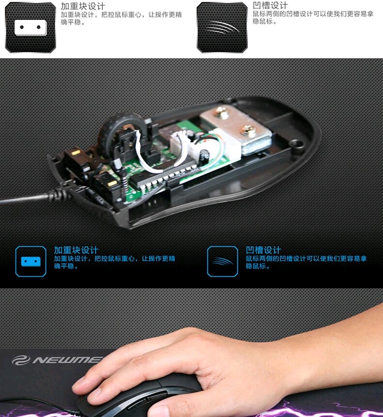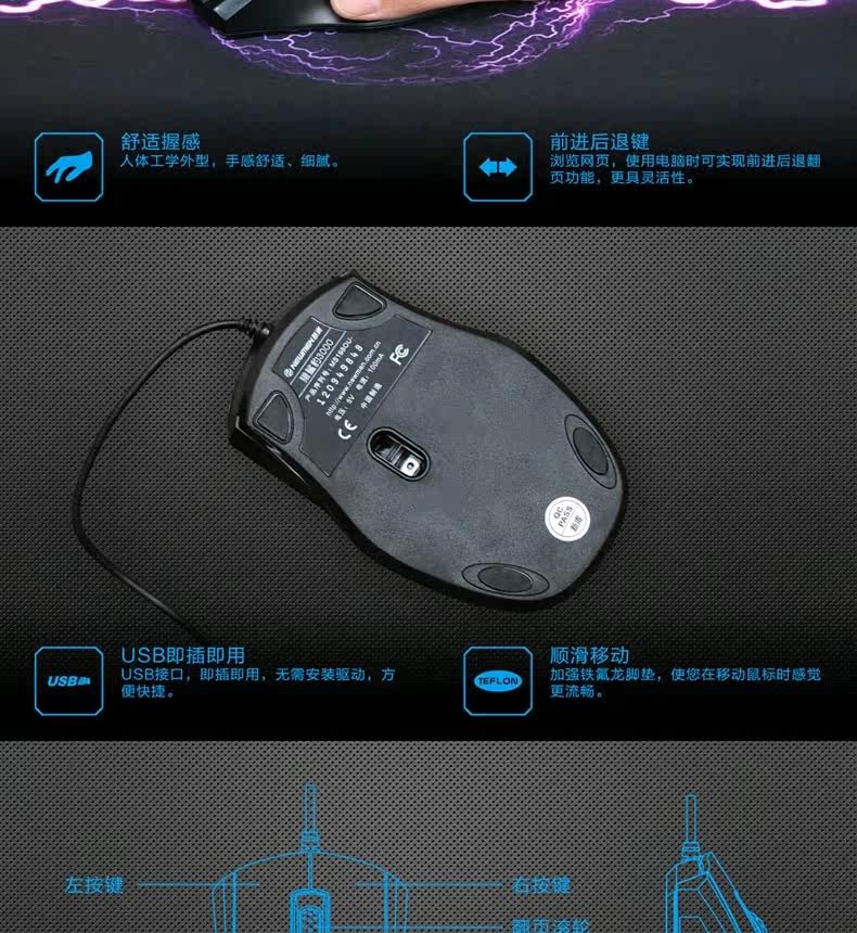 鼠标长度112(mm)、宽73(mm)、高39(mm),线长为1.5米,USB接口通用于所有台式机和笔记本电脑。