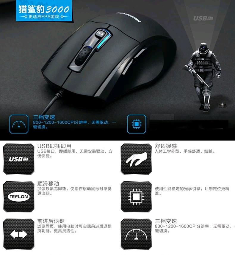 新贵 猎鲨豹 光电有线游戏USB大鼠标办公家用台式机笔记本电脑cf