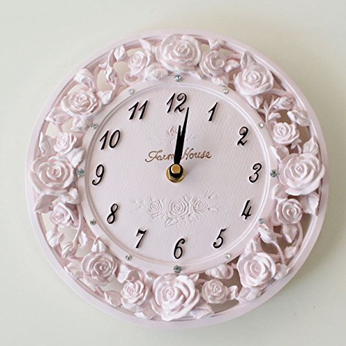 -. Title : 掛け時計 ローズレリーフ ピンク かわいい 姫系 ローズ 掛け時計 薔薇の掛時計