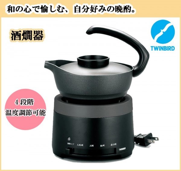 | 仕様 | カラー:ブラック 電源:AC100V 50-60Hz共用 消費電力:250W 温度調節範囲:4段階37~60度(人肌燗/上燗/熱燗/飛切燗) 電源コード長:約1.8m 酒器容量:約300ml(一合半) |