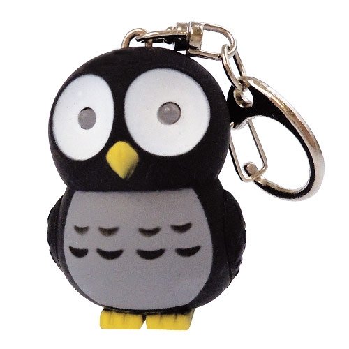 Studio : Kikkerland Publisher : Kikkerland Binding : Tools Home Improvement Product Description Is fumbling with your keys in the dark driving you crazy ? Don't worry, this cute Hooting Owl Key chain and Flashlight is here to help. Shining a bright LED light and accompanied by fun "hoot, hoot" sounds, this clever little owl helps you locate the right key, door locks and lost objects in the dark, with the push of a button.