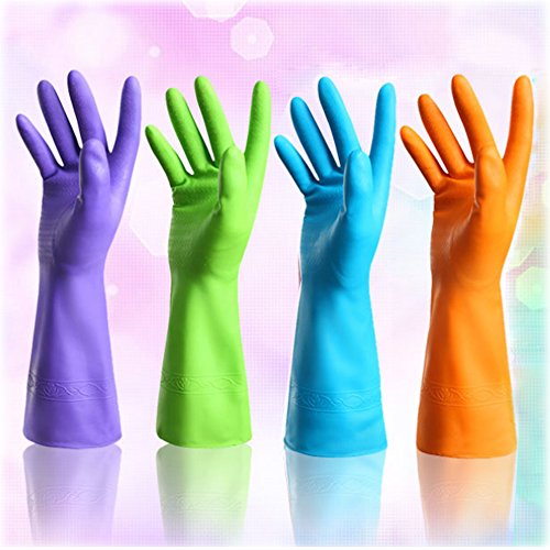 -. Title : Set of 4 Pairs - ZICOME Reusable Waterproof Household Antibacterial Latex Gloves for Kitchen Dish Washing Laundry Cleaning (Large, 4 Colors)
