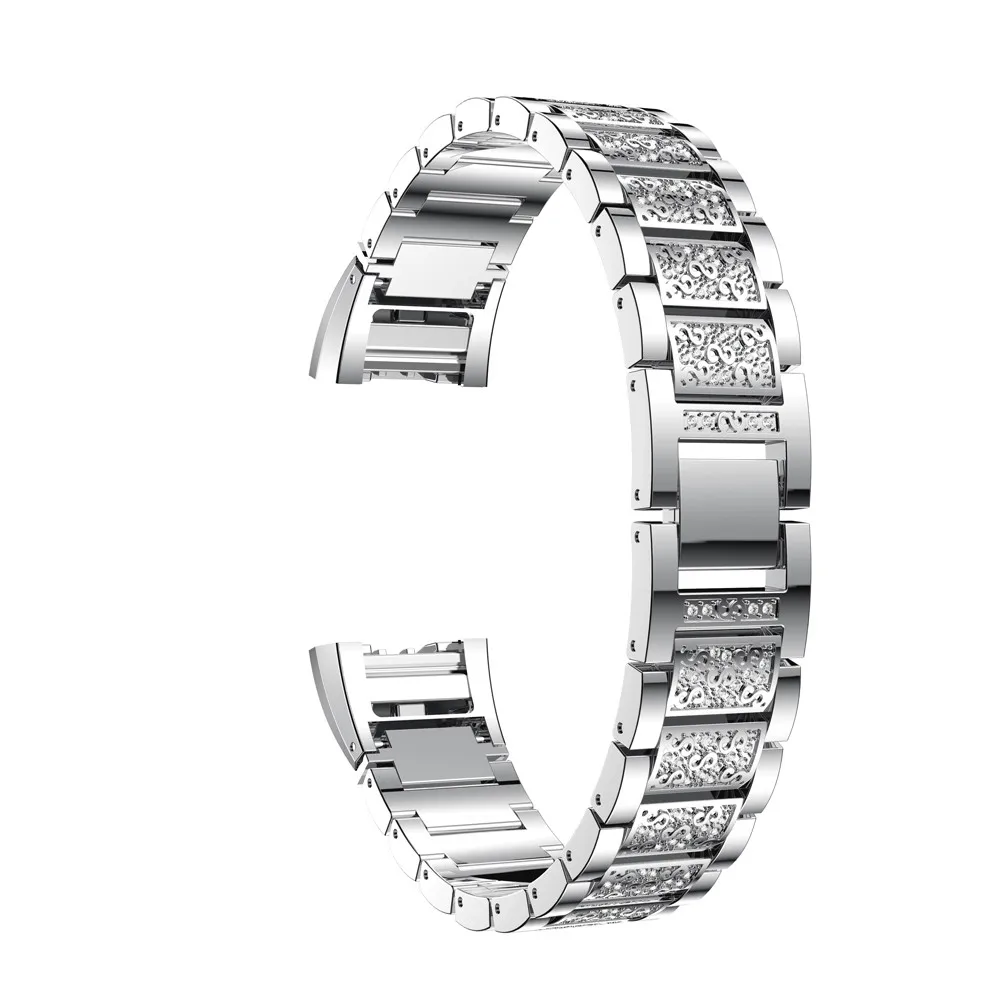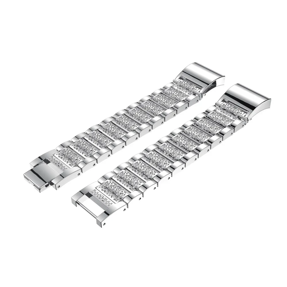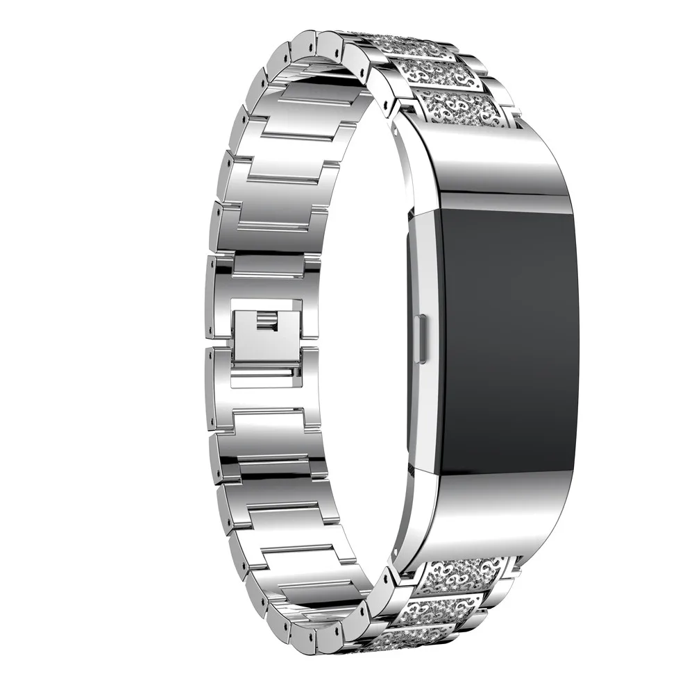 새로운 패션 시계 스트랩 2017 교체 크리스탈 스테인레스 스틸 시계 밴드 손목 스트랩 핏 비트 충전 2 시계 손목 시계