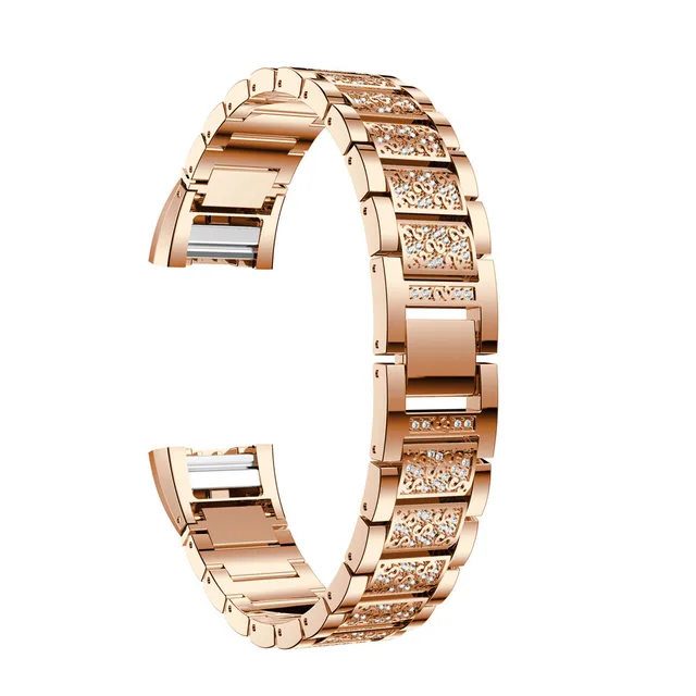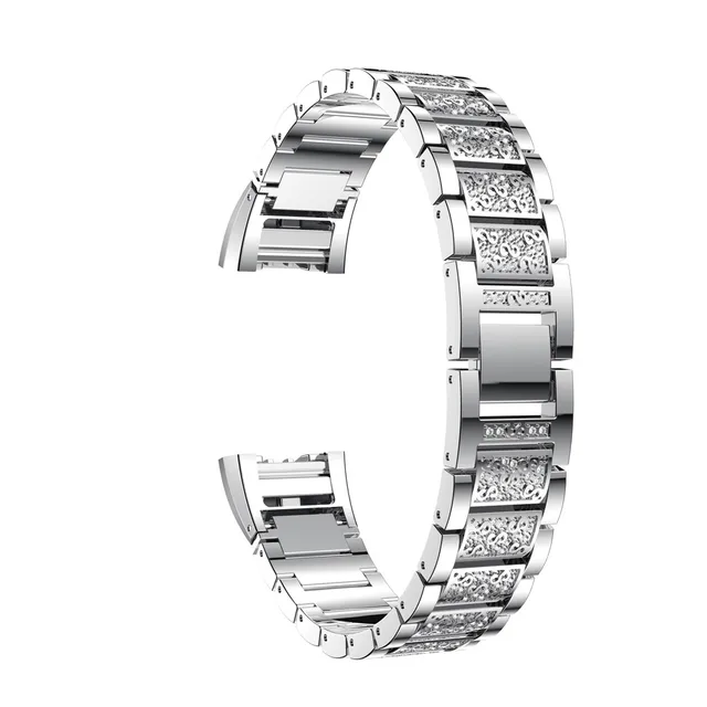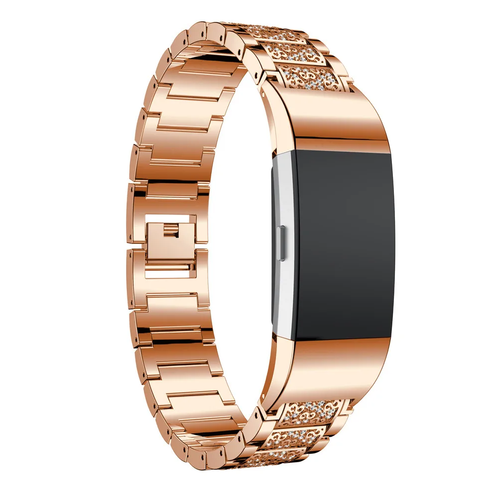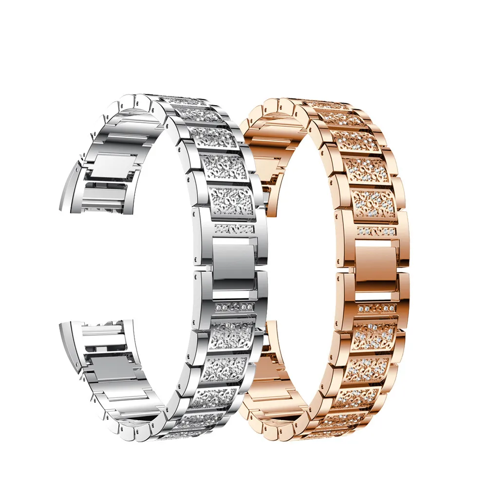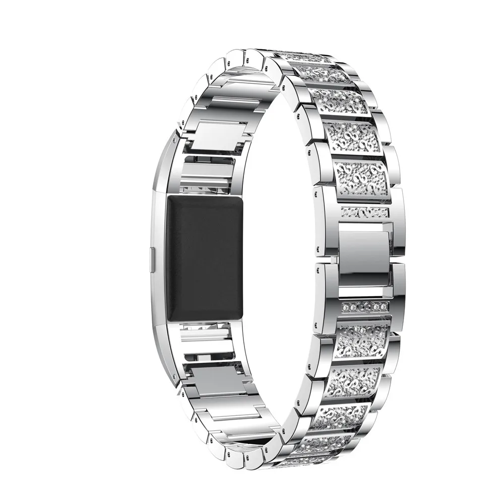새로운 패션 시계 스트랩 2017 교체 크리스탈 스테인레스 스틸 시계 밴드 손목 스트랩 핏 비트 충전 2 시계 손목 시계