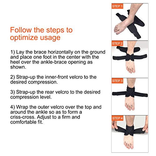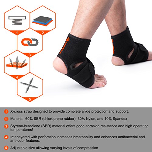 -. Feature : IDEAL FOR ANKLE HEALTH & PROTECTION: Our ankle support is designed with interior plantar-straps and exterior criss-cross reinforcement straps to offer strong support, strength and stabilization required for the ankle tendons and joints- especially during indoor workout sessions and physical activities. Designed to minimize and prevent the risk of injury. Helps to relieve edema and symp associated with acute injuries. Ideal for people suffering from sprains, tendonitis and arthritis. / ANTI-ODOR, ANTI-ITCH & BREATHABLE MATERIAL: Superior quality product made from highly-elastic, expandable and moisture-wicking material. Interlayered with perforation allowing air circulation to eliminate odor and prevent bacteria from accumulating. Keeps your feet dry, cool and hygienic! Styrene-butadiene (SBR) material offers good abrasion resistance and high operating temperatures! Provides exceptional fit and is composed of lightweight yet durable material. / PRACTICAL DESIGN: Open-heel design allows wide range of motion during indoor activities, while still providing enhanced support for the ankle tendons and joints. Anti-slip design prevents slipping-off during usage. Premium quality velcro that do not degrade after repeated usage. Provides your ankle with guaranteed compression that helps improve blood-circulation and eases pain from conditions such as: Heel spurs, Achilles heel, Plantar Fasciitis, and etc. / HIGHLY ADJUSTABLE: Fits both, left and right feet and up to 12" in feet-arch circumference. Our ankle brace comes with adjustable straps, which allow to meet different requirements and ankle diameters. Allows for variable compression levels. Ideal for indoor use- especially to prevent or recover from injuries. / 100% RISK-FREE and SATISFACTION GUARANTEED: We are confident that you will be fully satisfied with our product! If you are not happy with our product, we will definitely refund you or send you a replacement at NO additional cost! ORDER NOW and Get a FREE E-BOOK with your purchase.