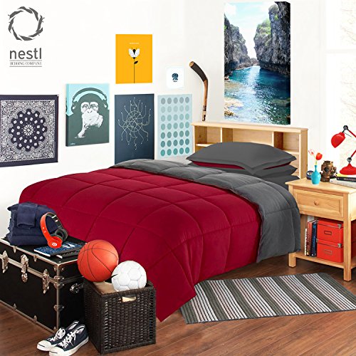 - Title : Bed in a bag Queen Black/Gray Reversible Colored 5 piece Dorm Room Comforter set By nestl bedding Including Comforter, Flat sheet, Fitted sheet, Pillowcase, Pillow shams,