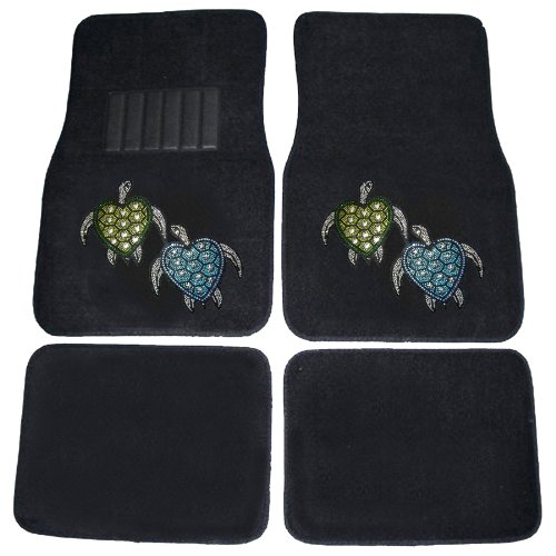 -. Brand : LA Auto Gear -. Color : blue/green -. Feature : Bright 3D crystal art rhinestudded design / Protects vehicle's carpet against spills, stains, dirt and any debris / Anti-fading coloring, Non-skid Backing / Approx. dimensions - [27" inches (long) x 17" inches (wide)-each front mat] & [17" inches (long) x 13" inches (wide)-each rear mat] / Unit of measure - 1 set of 4 pcs -. IsAutographed : 0 -. IsMemorabilia : 0 -. Label : LA Auto Gear -. Manufacturer : LA Auto Gear -. MPN : FM1106 -. PackageQuantity : 1 -. PartNumber : FM1106 -. ProductGroup : Automotive Parts and Accessories -. ProductTypeName : AUTO_ACCESSORY -. Publisher : LA Auto Gear -. Studio : LA Auto Gear -. Title : Blue & Green Turtles w/ Stars & Hearts Gem Crystal Studded Rhinestone Car Truck SUV Front & Rear Seat Carpet Floor Mats - 4PC