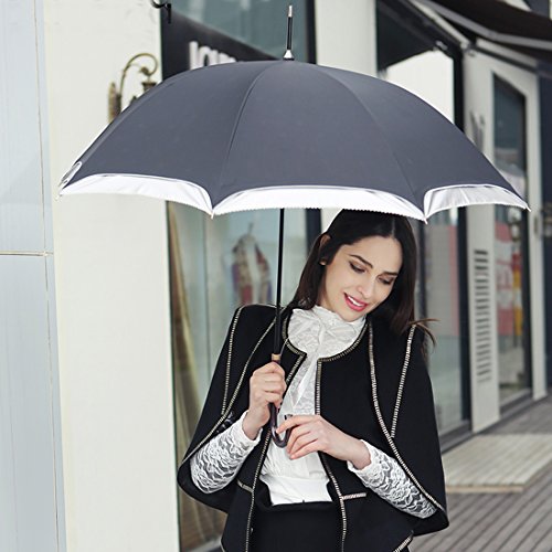 -. Brand : Kung Fu Smith -. Department : womens -. Feature : Elegant Stick Umbrella Shape Design / Strong UV Protection Umbrella Fabric / Manual Open Close and Easy to Carry / Elegant Leather Umbrella Hook Handle / Size: open diameter 91cm/36in, close length 82cm/32in -. Model : KFN27 -. ProductGroup : Apparel -. ProductTypeName : LAGE -. Title : Kung Fu Smith Women UV Blocker Stick Sun Parasol Rain Umbrella