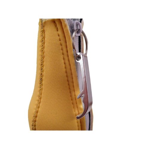 -. Feature : Zipper on reverse side for easy access / 1/8" (3mm) thick neoprene material / Rubber bottom for stability / Metal Bottle Opener Attached to Zipper Loop / Keeps drinks colder longer and hands dry