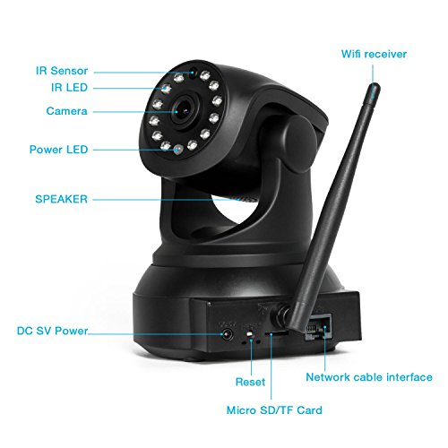 -. Feature : Motion Alerts: 720 Full HD, 13 pcs leds, support video recording with stunning clarity and sharper details via HD IP Cameras in Day/Night and storage to TF card (Up to 128GB). / Easy Setup: Setting up your home security camera takes only a matter of minutes. Download free apps to your iOS/Android mobile device with three methods in installation guide. / Wide View Angle: 270° horizontal and 80° vertical rotation with 720p HD show clear and exquisite image with IR-CUT night vision(up to 30ft). / Two-Way Audio: with built-in speaker and microphone, you can hear the words clearly and chat freely via the smart phone. / ONVIF, RTSP, HTTP: this ip camera also supports ONVIF, RTSP and Blue Iris, as well as a built-in HTTP site for monitoring and advanced configuration. Any question, please feel free to contact us via amz-service@hotmail.com.