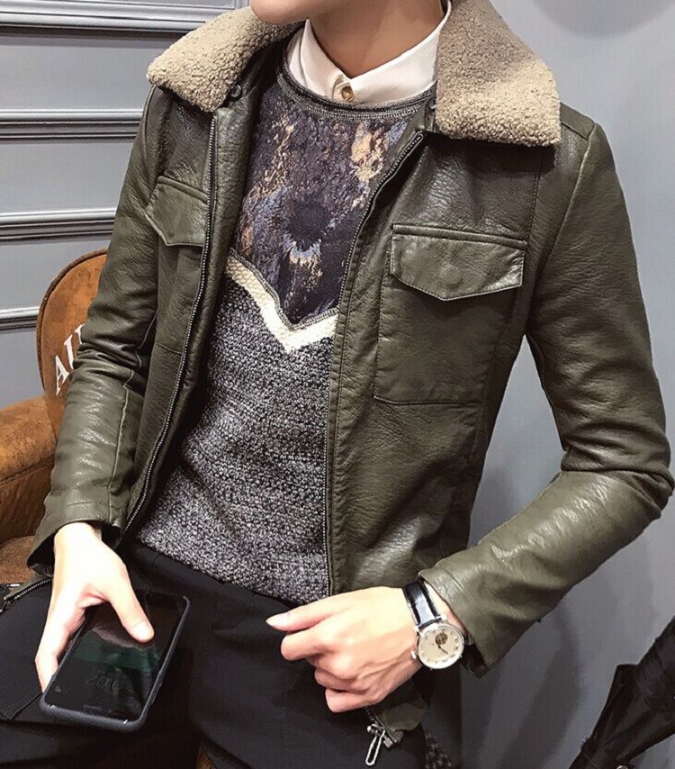 オシャレなフィークーラムファー襟と柔らかい手触りレザー ジャケット。 裏起毛厚手真冬でも着られる かっこいい 革ジャケットです。メイン素材:(表地)PUレザー(裏地)ポリエステルカラー:ブラック、カーキーサイズ:L.XL.2XL.3XL.4XL.5XL