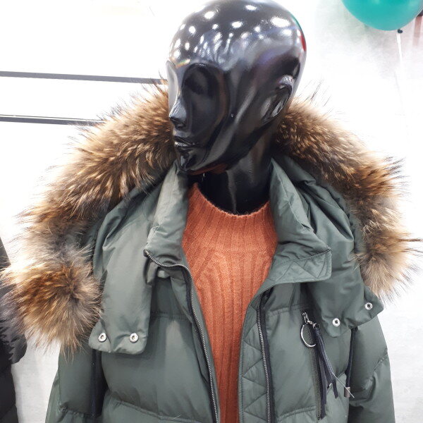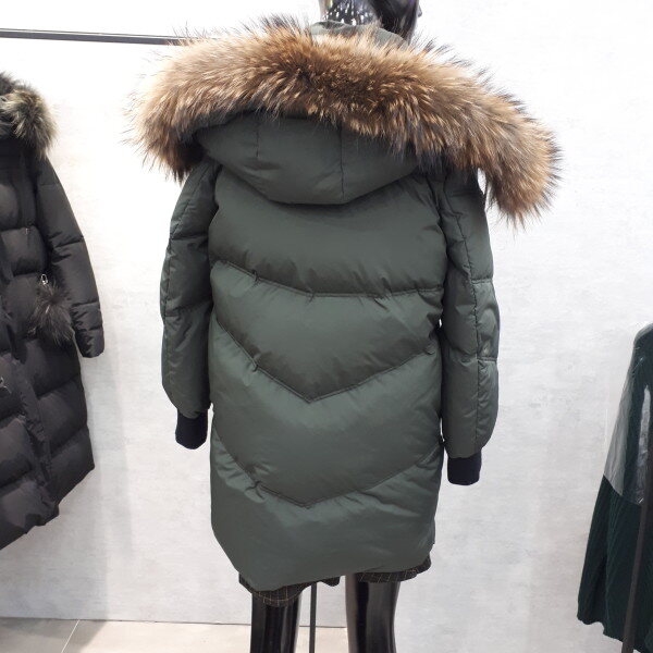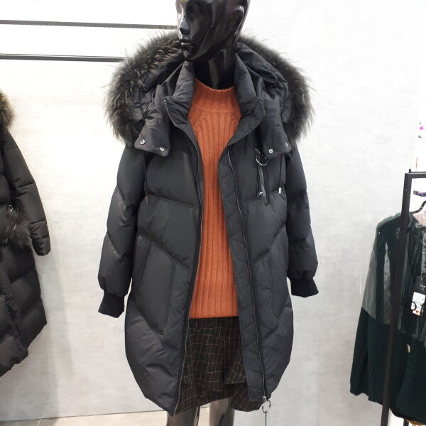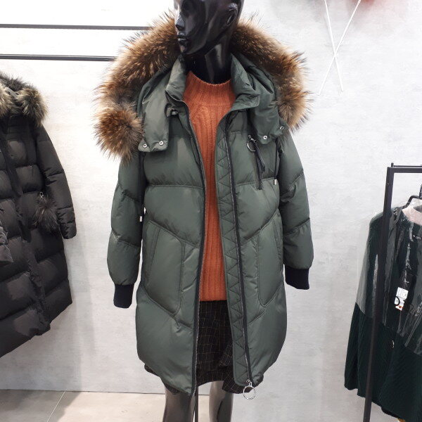 무릎라인 라쿤털 오리털패딩입니다