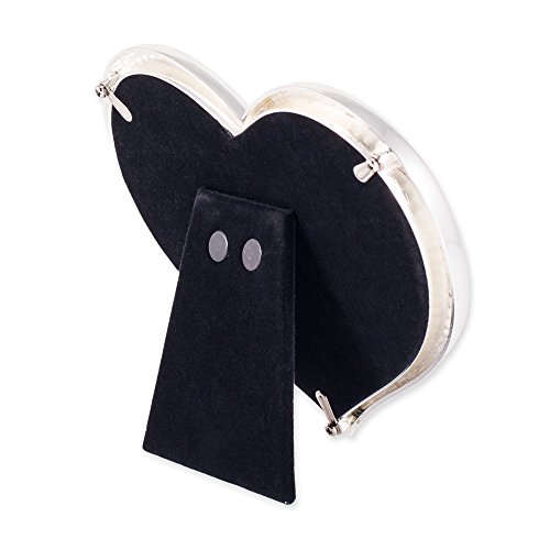 -. Feature : Silver Plated Metal / Jeweled Rhinestone Accents / Holds 5x5 Photo / Black Velvet Easel Back / Makes a perfect Anniversary, Wedding or Valentine's Day Frame