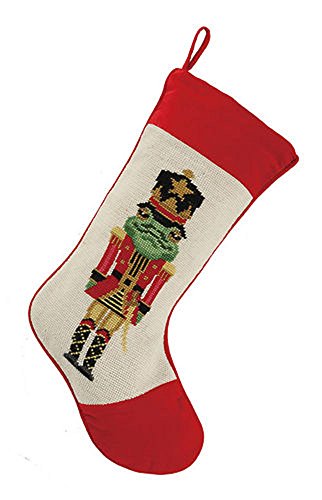 Nutcracker Soldier Frog Christmas Stocking, Wool Needlepoint, 11 Inch X 18 Inch