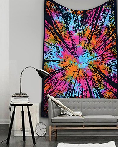"New Launched" Popular Rainbow Tye dye Locust Trees From below tapestry Forest neture's whims Intricate Floral Design Indian Bedspread 54x84 Inches,multi color tapestry By Popular Handicrafts