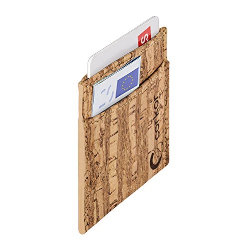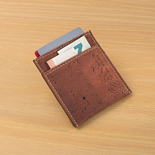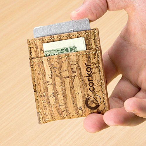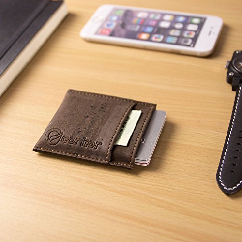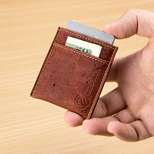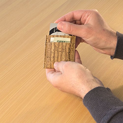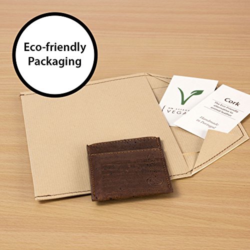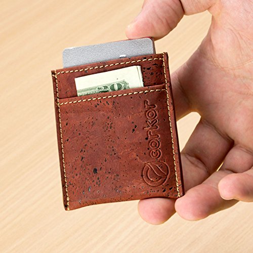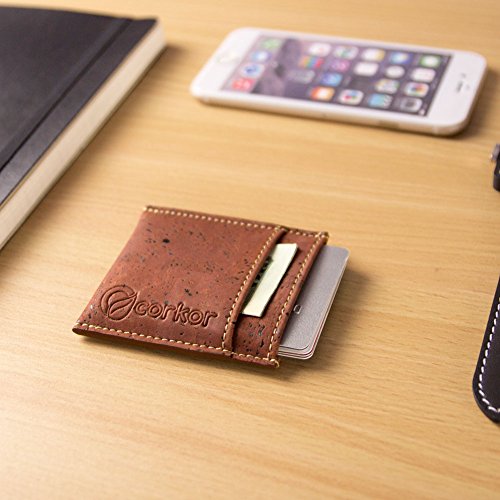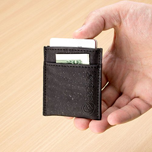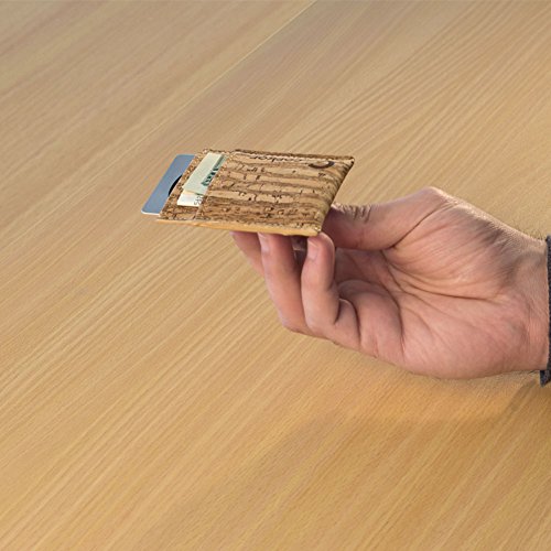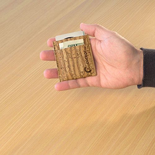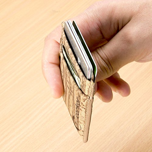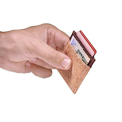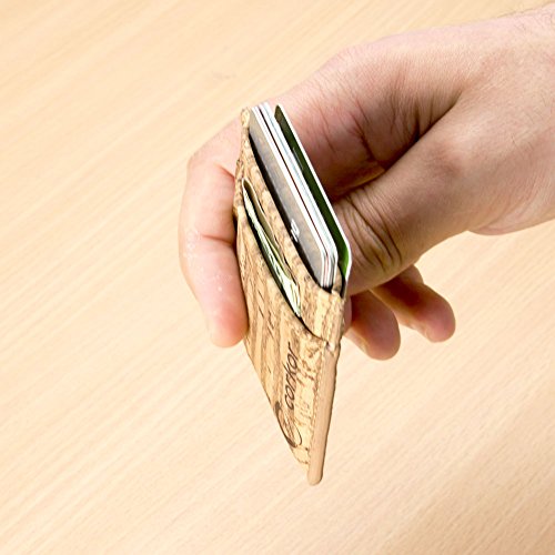 Features: - Super Slim - Probably the lightest on the market - Features 2 slot - one each side for notes and bills - Top middle openning - Fits up to 10 cards - Precisely crafted - Soft, flexible and durable - Made from eco-friendly material - Cork (leather free) - No animal products used, 100% animal free - Gift idea for vegan and vegetarians External Size - 3.2" x 2.8" x 0.2" inches - 81 x 71 x 5 millimeters