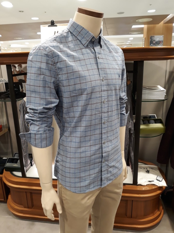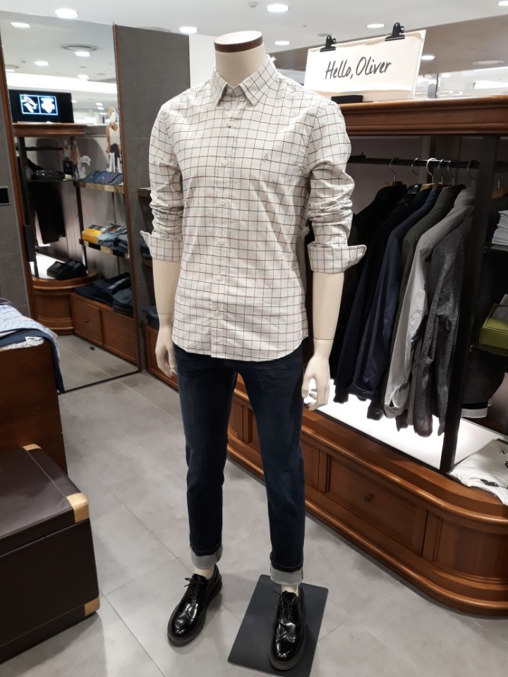 캐주얼한 감성이 느껴지는 멜란지 미디움 체크 셔츠 입니다