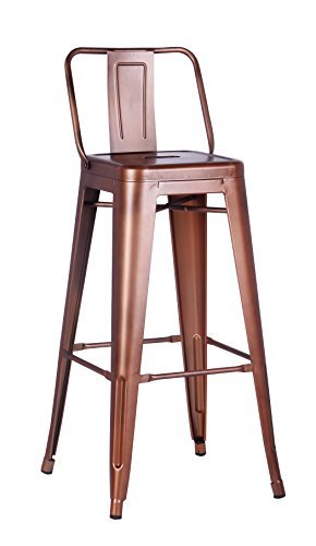 -. Title : Distressed Metal Barstool with Back, Vintage Copper, 30 -inch, Set of 2