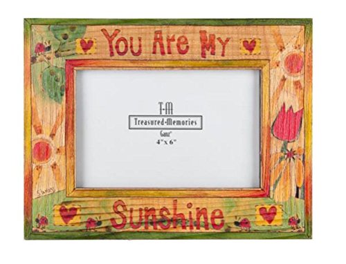 -. Binding : Kitchen -. Brand : Ganz -. Color : Multicolor -. EAN : 0661371783819 -. Feature : Made of wood / Measures approximately 9 x 0.25 x 7 inches / Holds any standard 4 x 6 inch photo / Features colorful and whimsical design / Easel back makes for easy tabletop display -. Label : Ganz -. Manufacturer : Ganz -. Model : ER32443 -. MPN : ER32443 -. PackageQuantity : 1 -. PartNumber : ER32443 -. ProductGroup : Home -. ProductTypeName : HOME -. Publisher : Ganz -. Size : 9 x 7 -. Studio : Ganz -. Title : You Are My Sunshine Painted Peace 4x6 Picture Frame -. UPC : 661371783819