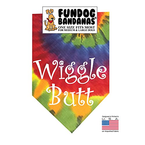-. Binding : Misc. -. Brand : FunDog Bandanas -. Color : Black -. EAN : 0083351961039 -. Feature : Cute! / Fun! / Affordable! / Makes a great gift! / 22x22x31inches -. Label : The Dog Perk Corporation -. Manufacturer : The Dog Perk Corporation -. PackageQuantity : 1 -. ProductGroup : Pet Products -. ProductTypeName : PET_SUPPLIES -. Publisher : The Dog Perk Corporation -. Size : One size fits most for medium to large dogs -. Studio : The Dog Perk Corporation -. Title : BANDANA - Wiggle Butt Bandana for Medium to Large Dogs - Dark Tie Dye -. UPC : 083351961039