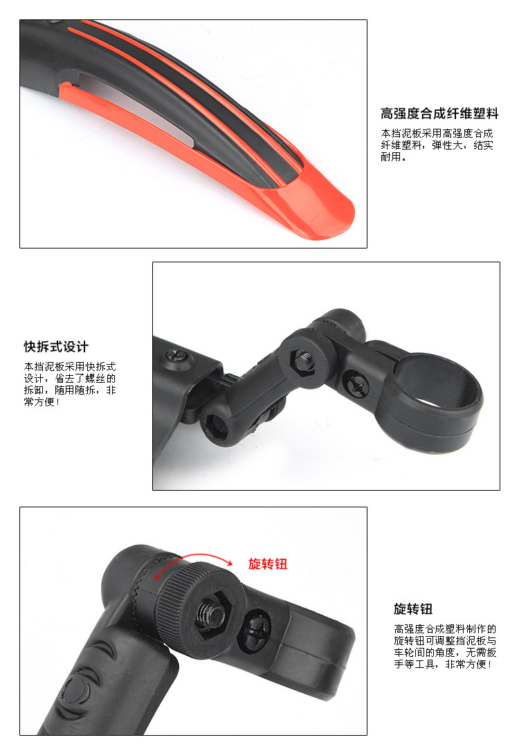 Note: There are screw holes can only be installed, please note that look the picture, what specifically is installed in the site! Product is a pair of price! Specifications: length 40 cm rear fender, front fender is about 30 cm Materials: A synthetic plastic, high strength Special Type: Easy Install Quick Release appearance Suitable for all kinds of mountain bike seatpost diameter less than 34mm, the road car, extended fenders more practical, indeed mudguard, rain! ?? color1 ? ? ? ? ? ? ? ? ? ? ? ? ? ? ? ? ? ? ? ? ? ? ? color2 ?? color3 ? ? ? ? ? ? ? ? ? ? ? ? ? ? ? ? ? ? ? ? ? ? ? color4 color5