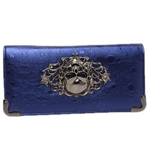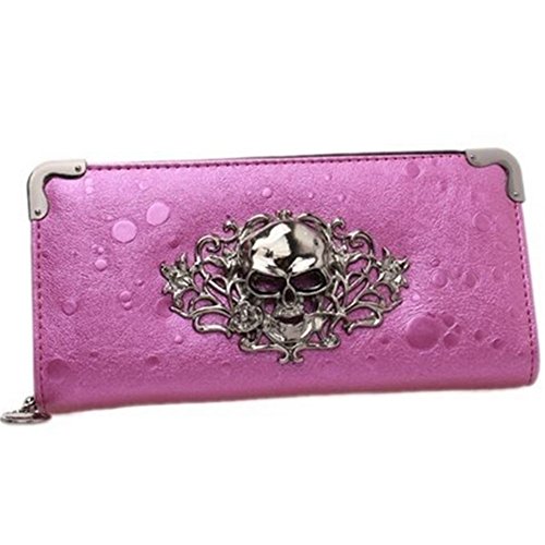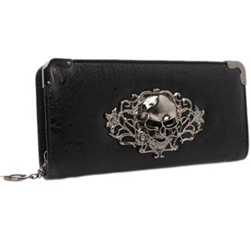 Hengsong Women Vintage Pu Leather Long Punk Zipper Skull Clutch Wallet Purse (Black)
