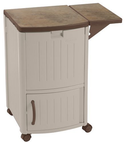 - Feature : Outdoor beverage cooler with decorative, durable plastic design / Side tray with cabinet space below / Drop leaf extensions for extra counter space / 4-inch casters for easy transport / Measures 34 by 20 by 22 (height by width by depth)