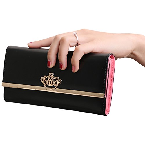 Title : Jastore Lady Women Crown Clutch Leather Long Wallet Card Holder Purse (Black)